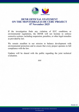If violations are proven, the DENR said in a statement Friday, November 7, that it “will not hesitate to enforce corrective actions, including suspension, penalties, or other legal remedies as provided by law.”