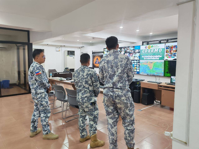MONITOR. Coast Guard personnel and local disaster risk reduction officers monitor weather developments in Surigao del Norte as Severe Tropical Storm Tino (Kalmaegi) approaches, with tropical cyclone wind signals raised over parts of Visayas and Mindanao. Coast Guard District Northeastern Mindanao