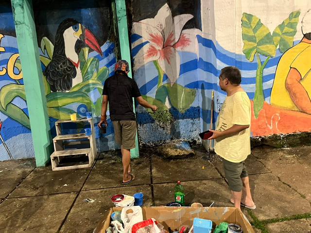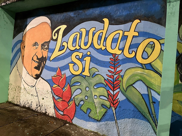Filipino artists AG Saño, Tagoy Jakosalem, and climate activist Yeb Saño painted a mural near the venue of COP30 featuring the late Pope Francis and Brazilian eco-martyr Sr. Cleusa Carolina Rody Coelho. | via @Iya Gozum, photos from Yeb Saño
