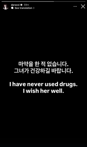 Sandara Park on Wednesday, March 4, denies the drug allegation made against her by 2NE1 co-member Park Bom. “I have never used drugs. I wish her well,” Sandara writes in an Instagram story Wednesday. Bom on Tuesday, March 3, posted a handwritten letter on Instagram addressing her 2014 drug controversy. In her letter, which has since been deleted, Bom alleged that her past scandal was used to cover up Sandara getting "caught for drugs."