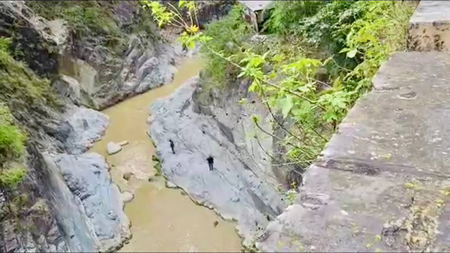 Local policemen inspect the spot where former DPWH undersecretary Cathy Cabral fell to her death in Sitio Marammal, Barangay Camp 4, Tuba, Benguet. The place is two minutes away from the P264-million anomalous rockshed project that the President had called “useless.” Contributed photos via Mia Magdalena Fokno/Rappler
