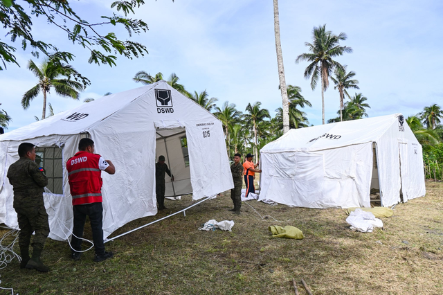 The tents were set up by DSWD Bicol, the Philippine Army, and the Philippine Coast Guard. Each tent can shelter a family of 5-7 people.